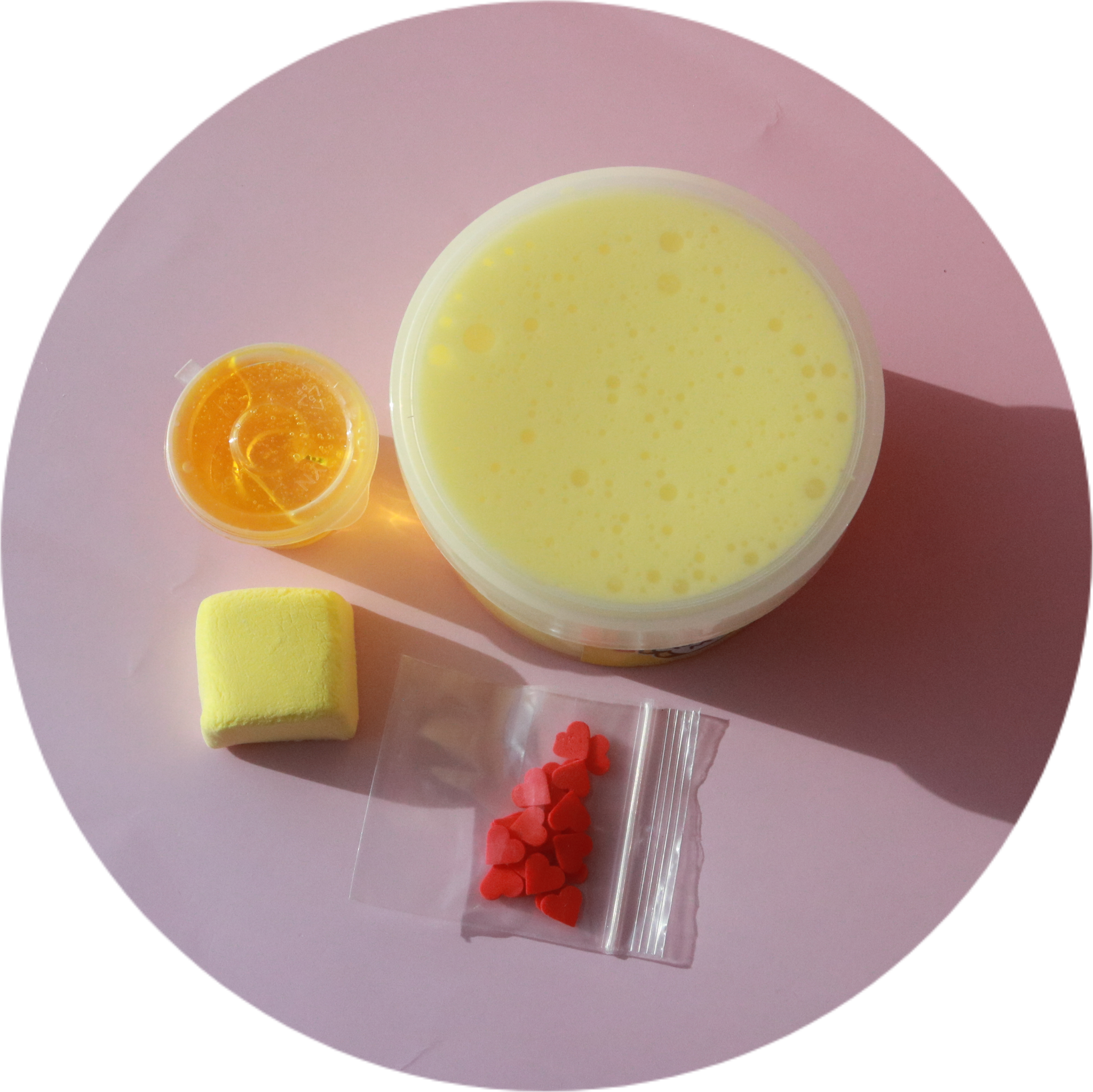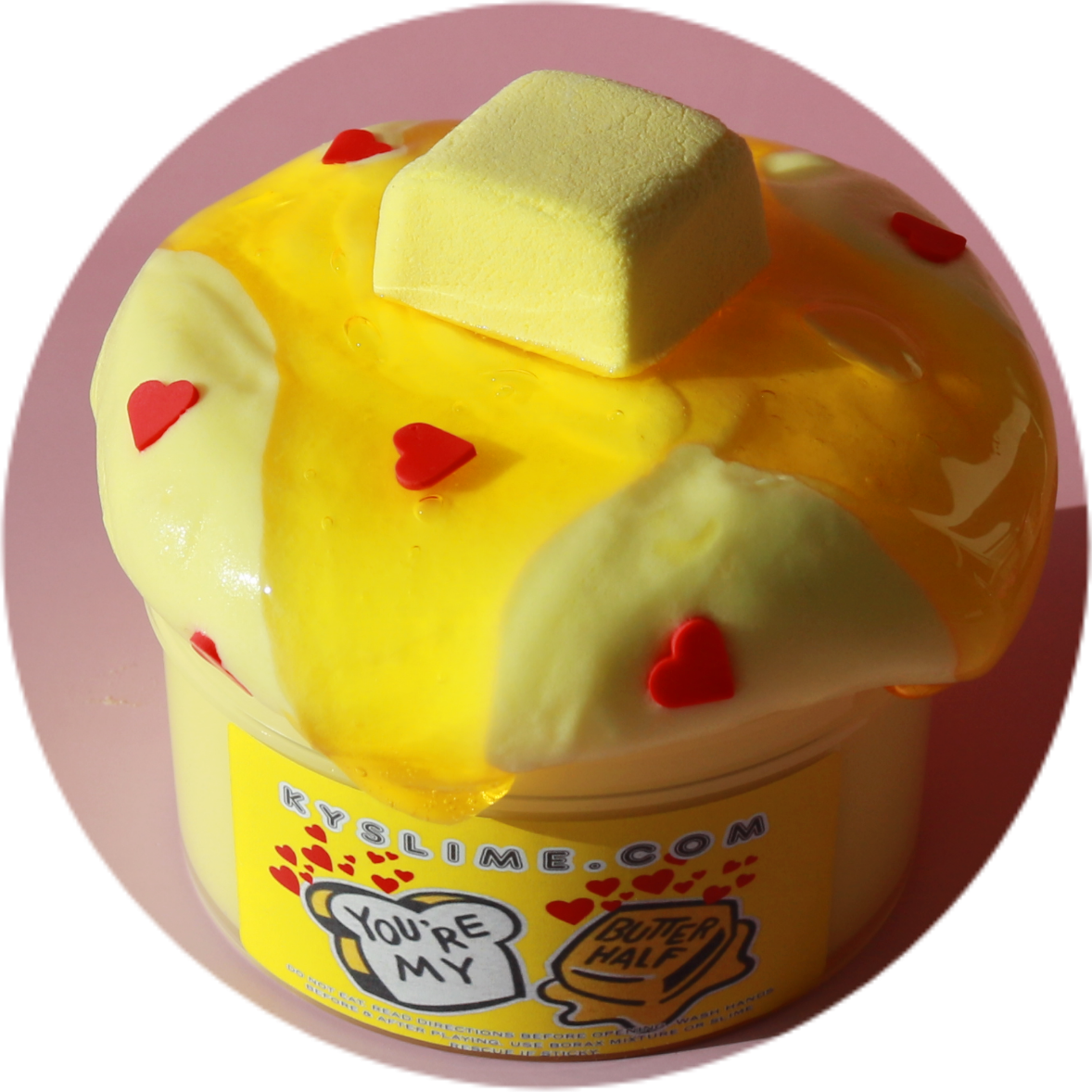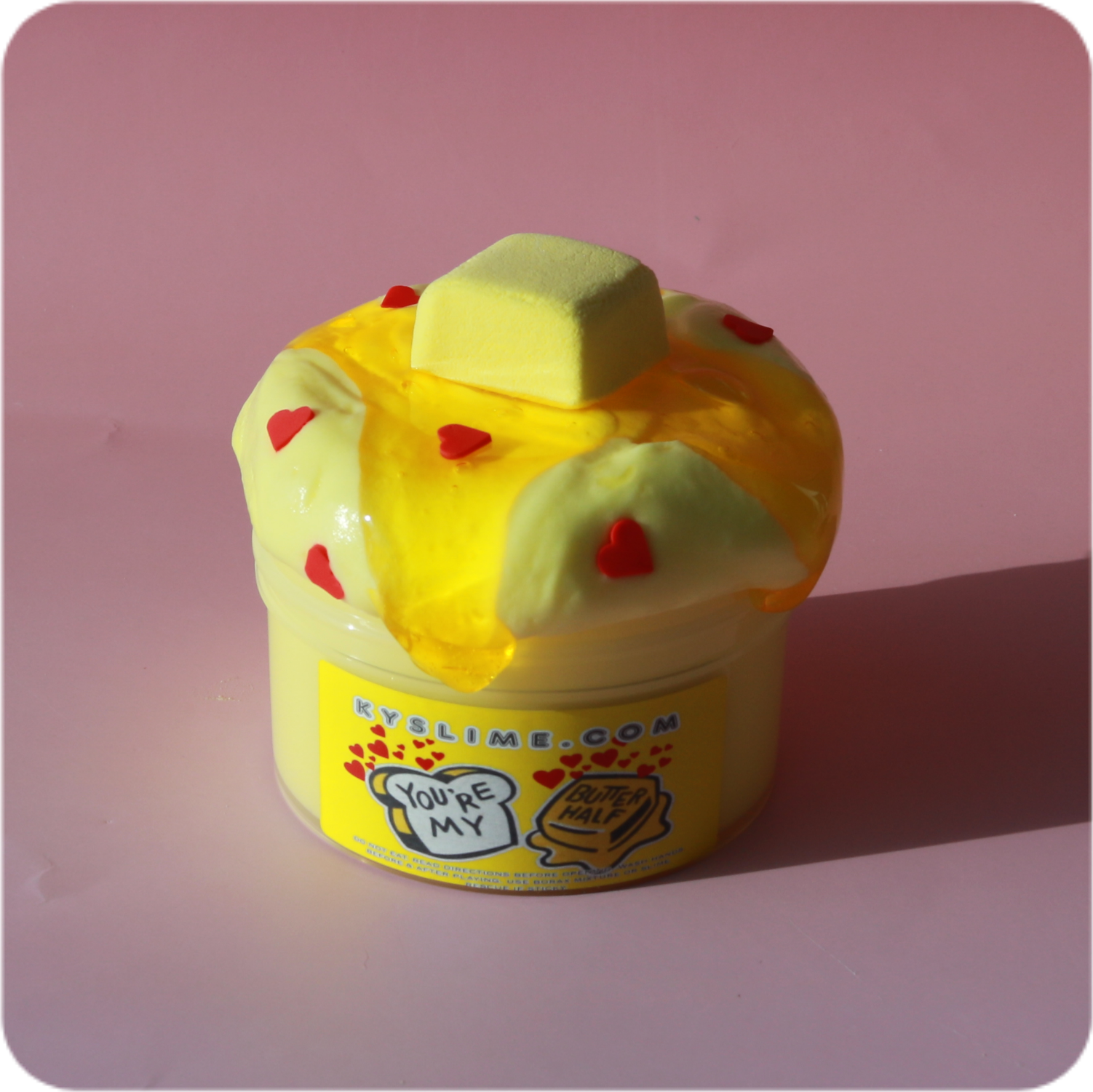 DIY: 1oz melted butter slime drizzle, red heart fimos & clay butter pat