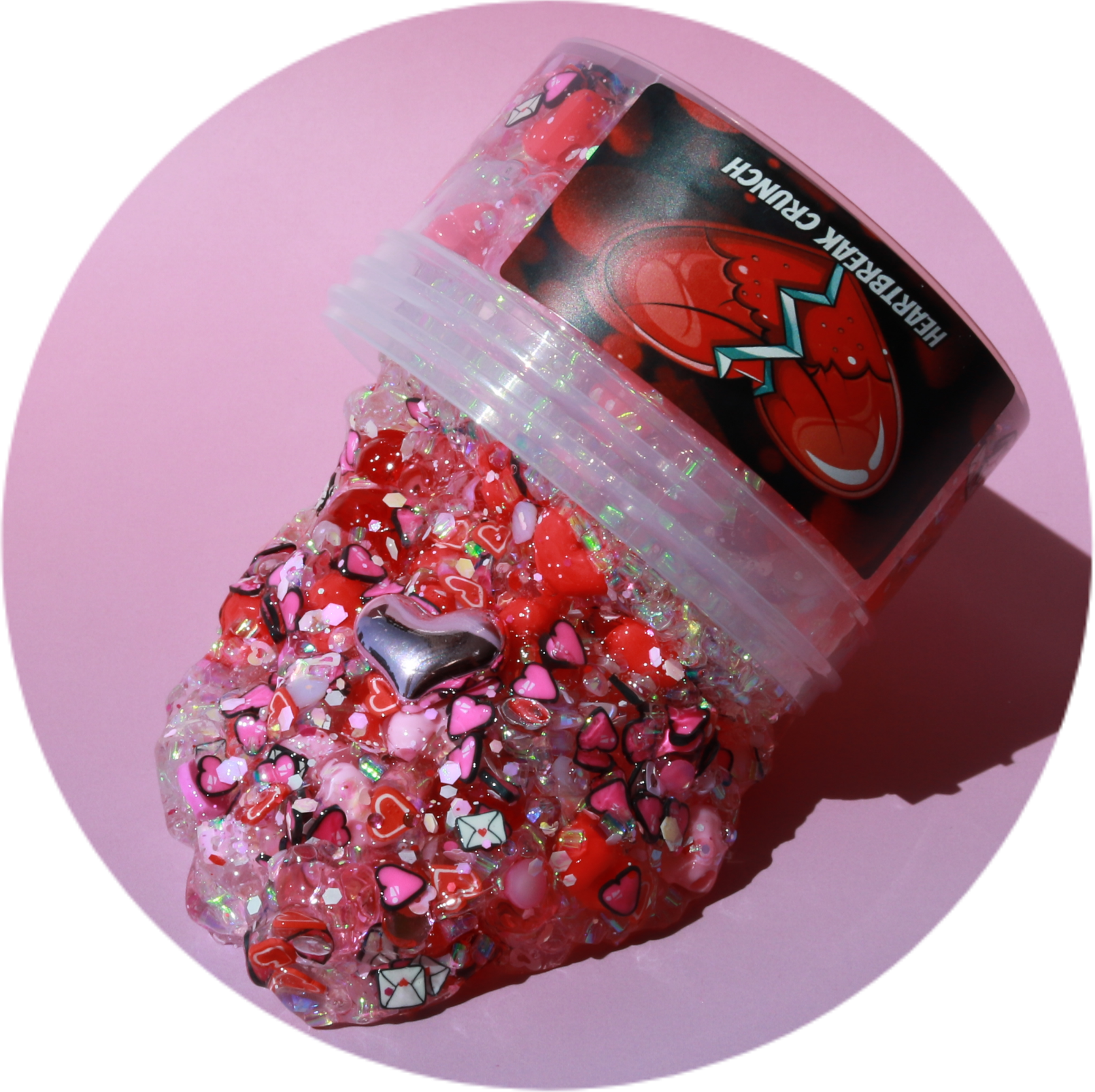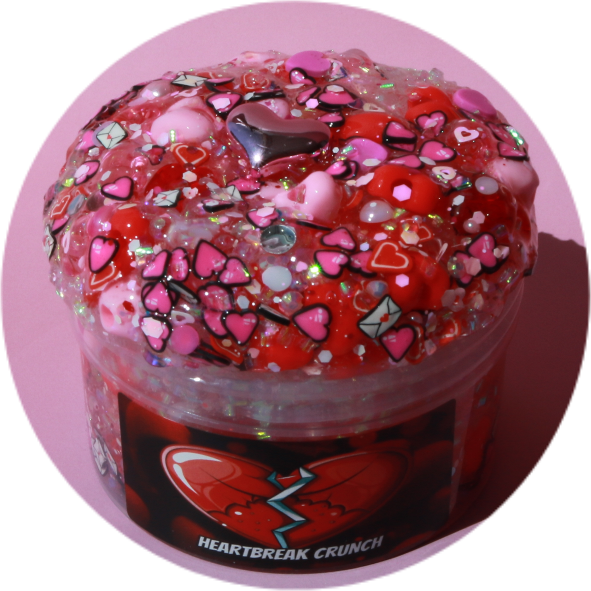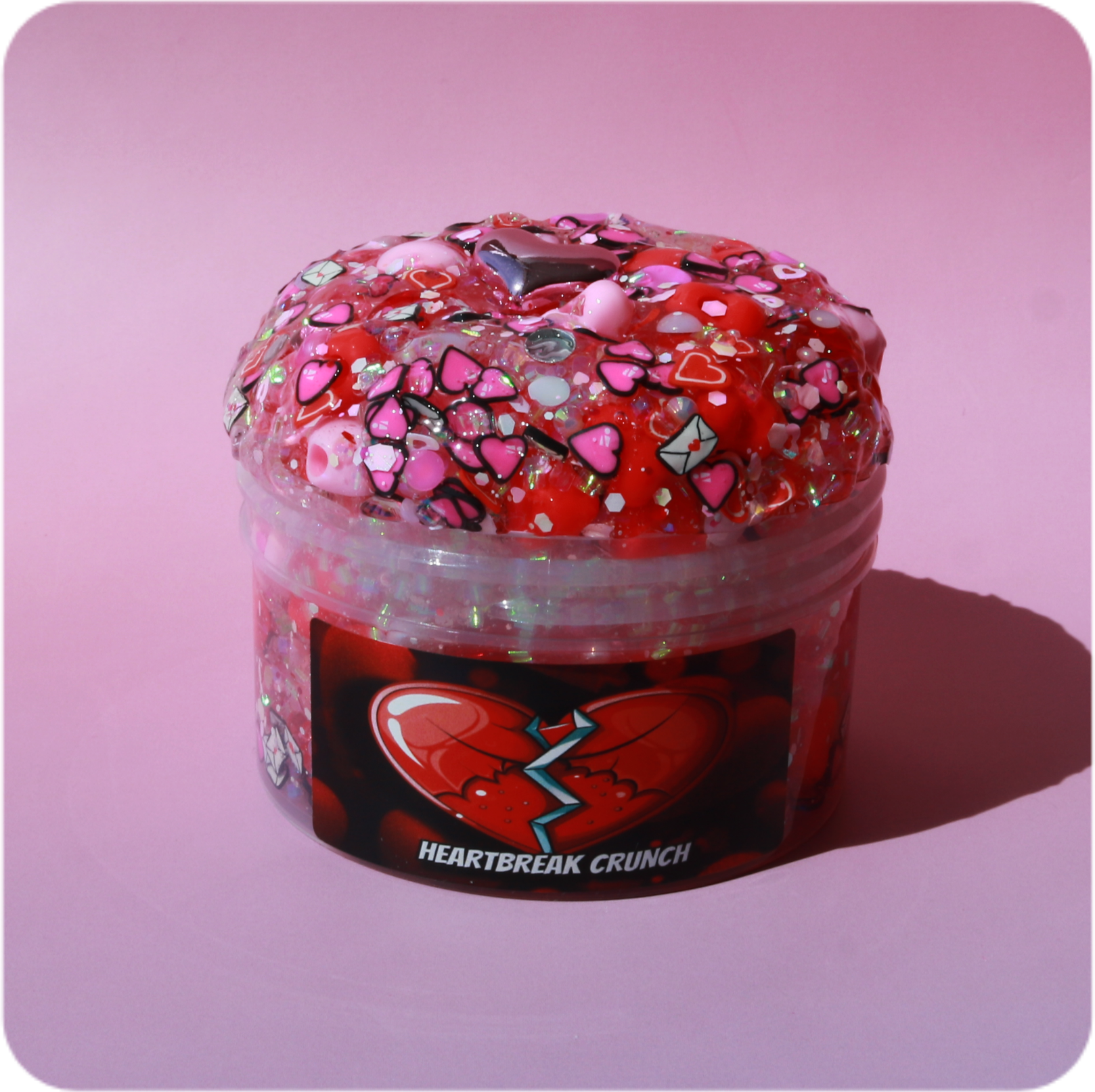 This slime screams Valentines day! A super packed mix of heart beads, bingsu, pearls & loaded with V day sprinkles. The crunch is heartbreakingly satisfying. Scented like sour cherry candy that’ll make your mouth water!