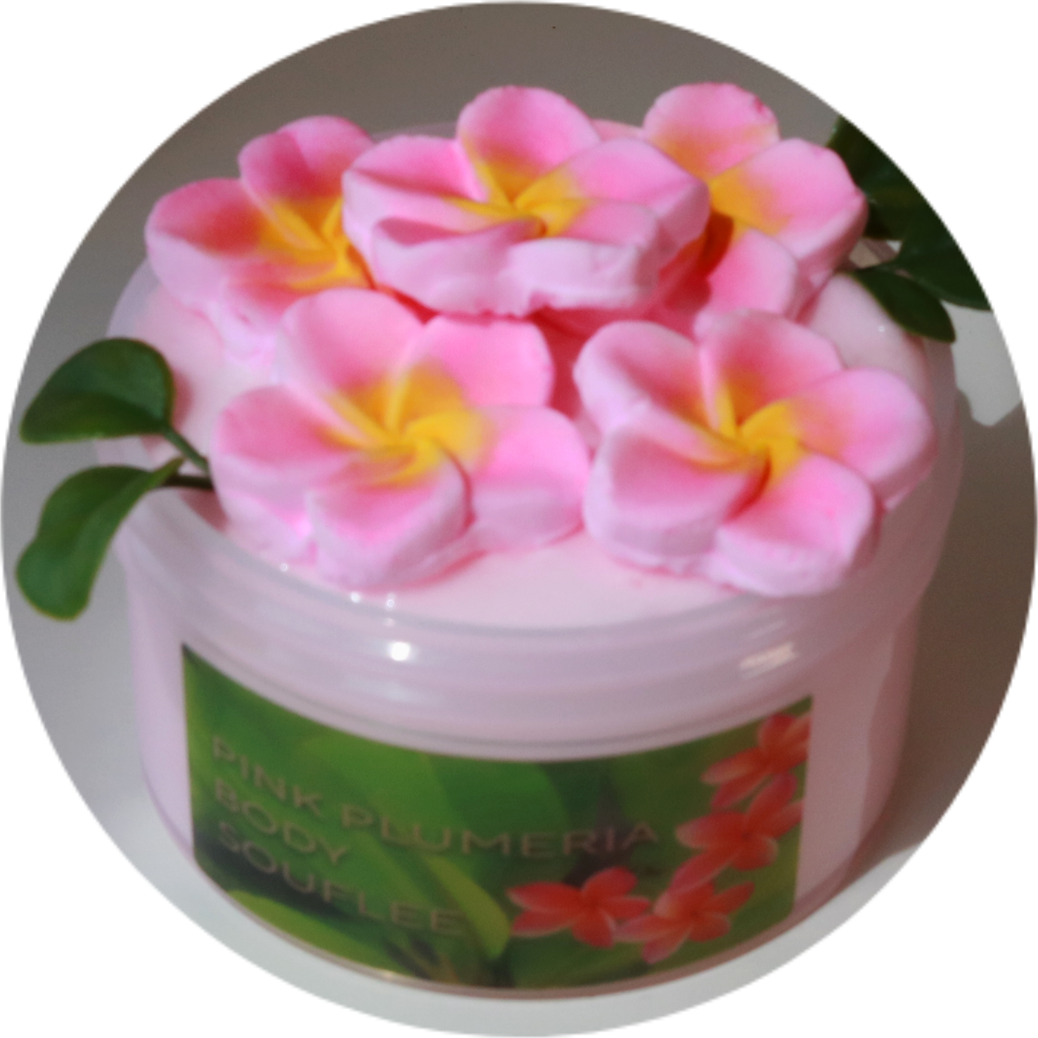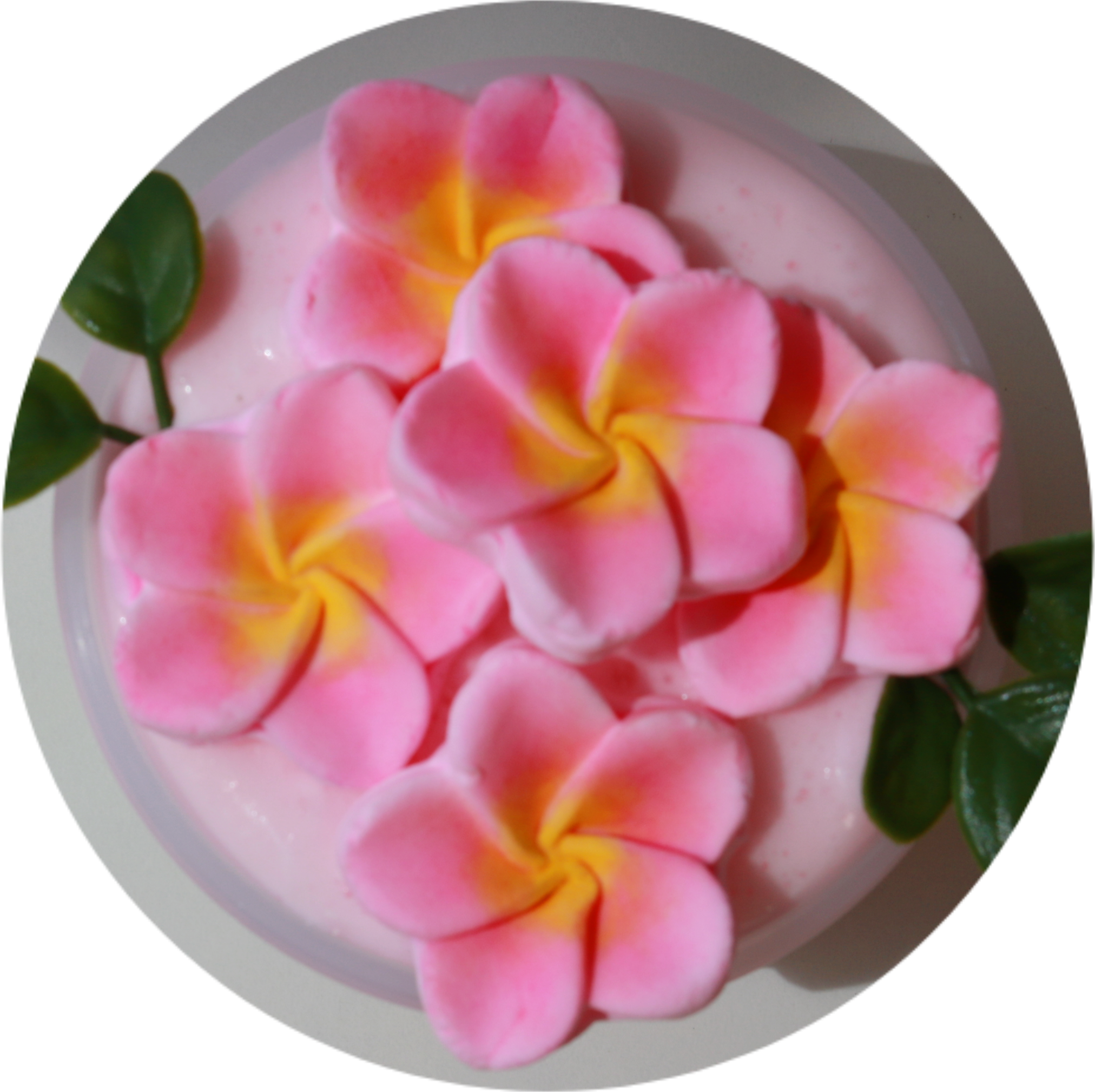This ultra-Kywhip texture starts off thick and chewy, then transforms into a light, airy, perfectly whipped dream as you inflate it. Topped with the cutest hand-painted pink plumeria clay pieces giving it an island touch. Scented like Beija Flor 68 — a warm, tropical customer favorite you already know and love.