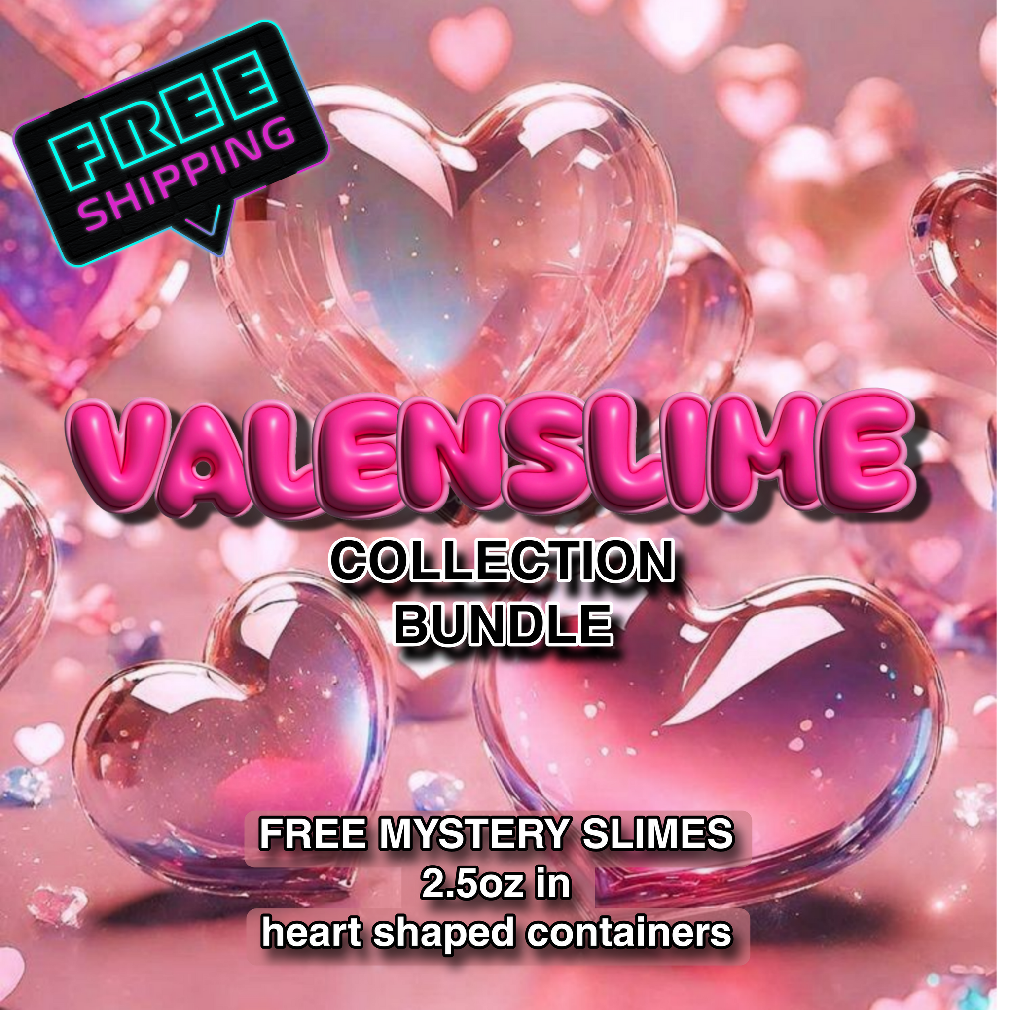 FREE mystery slimes in 2.5 heart shaped containers!
