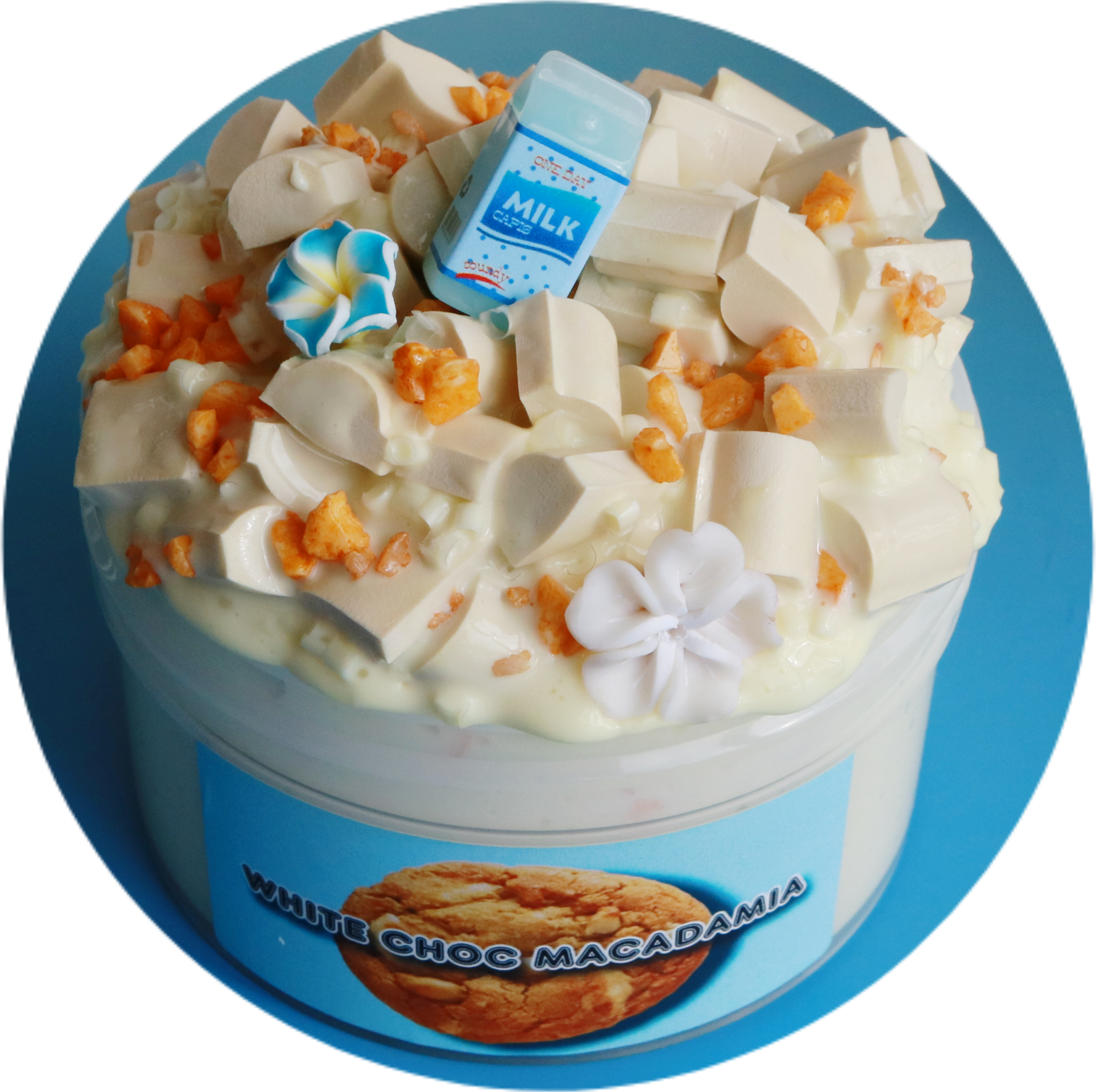 This texture is ultra-creamy and thick, packed with java-bingsu add-ins for unbelievable ASMR. It truly looks like melted white chocolate and even comes with the cutest milk carton charm. Scented like buttery macadamia nut toffee that’s so dangerously delicious!