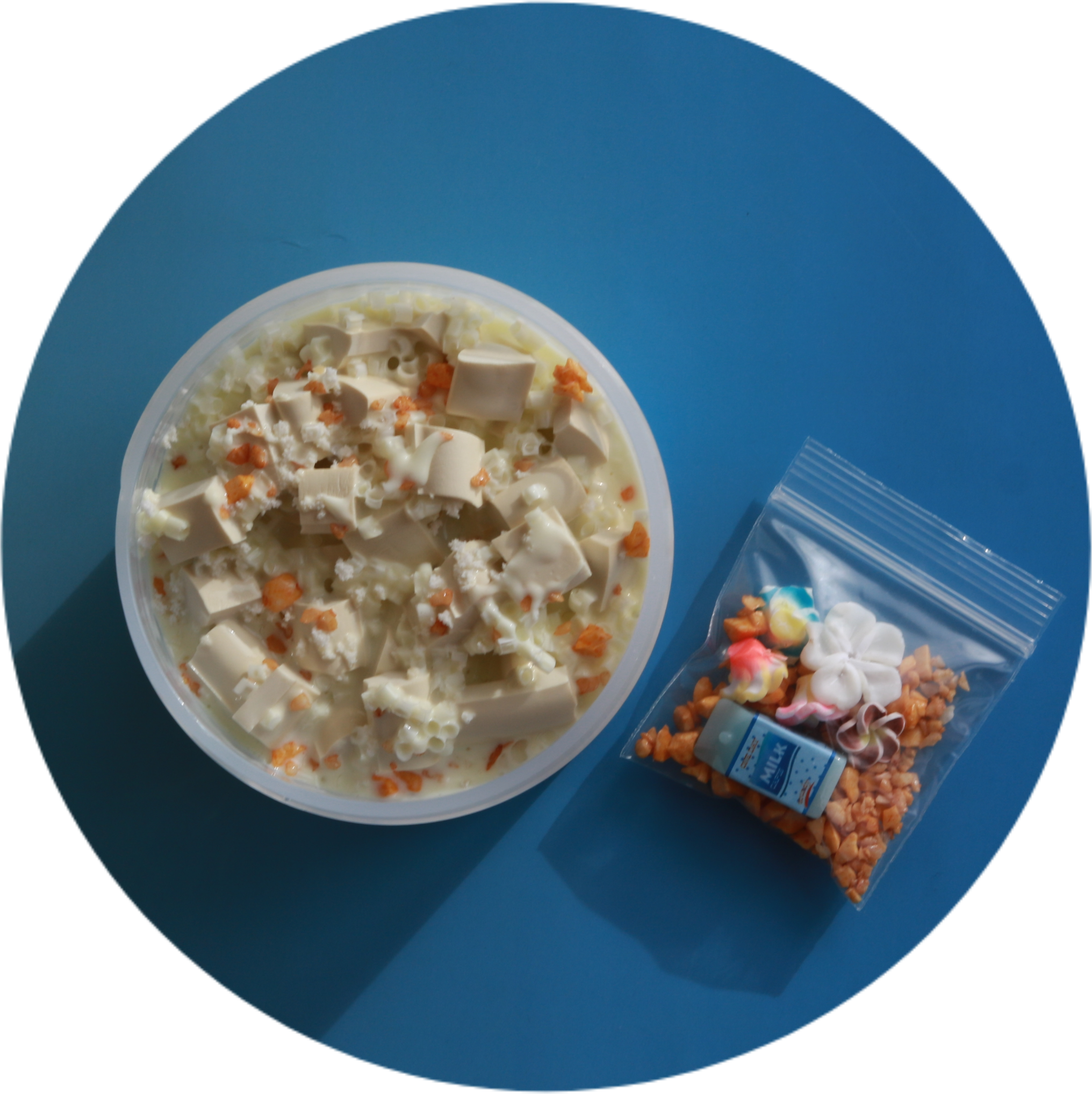 DIYfaux chopped nut sprinkles, milk carton charm, random mini plumeria flower charms