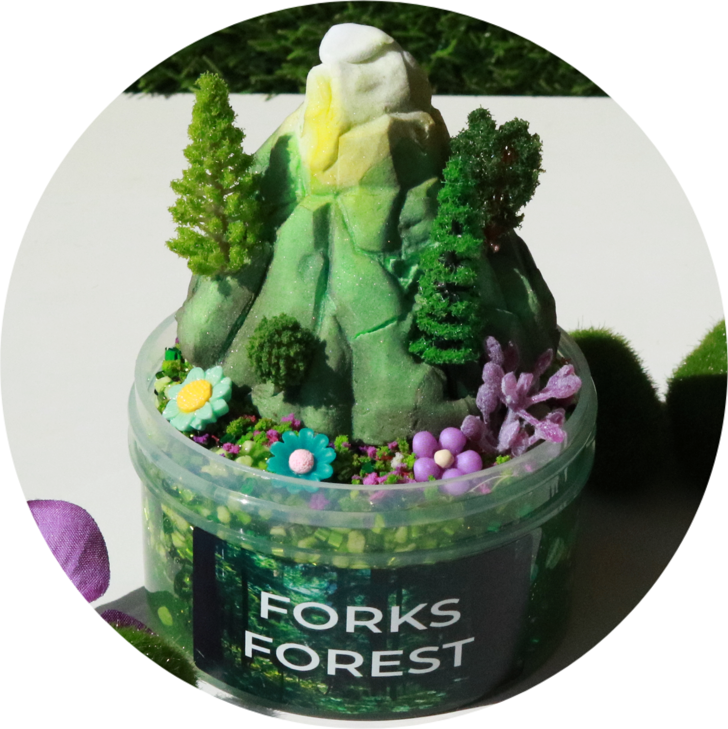 Inspired by the iconic forest that plays a huge part in the series. These flower charms represent the wildflower meadow where Edward and Bella often laid together on. The clay mountain blends into the lush perlite bingsu base, transforming into a giant crackly, sizzly pillow. Scented like fresh forest rain and newly cut grass, its grounding, peaceful and so therapeutic.