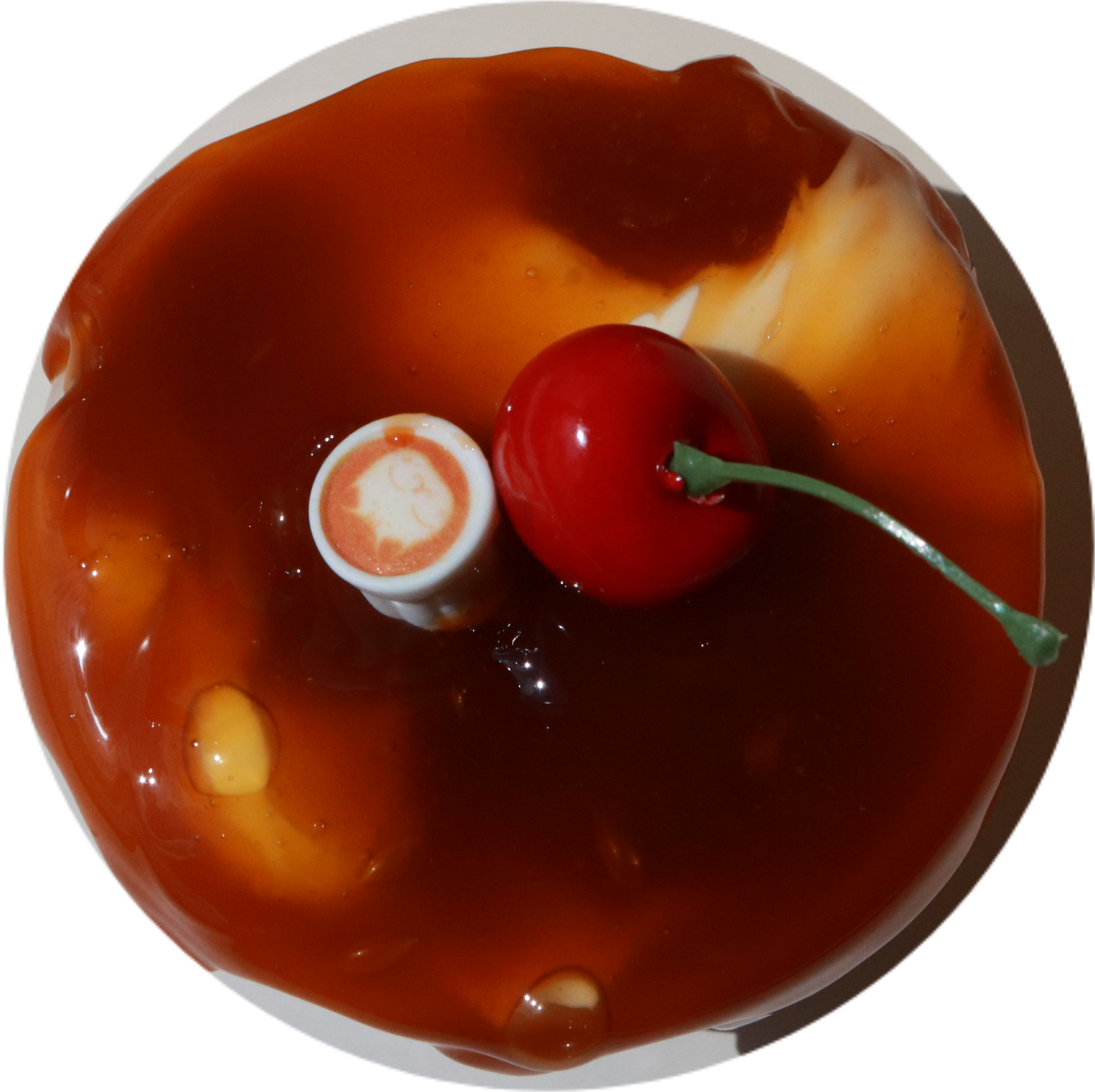 DIY: 2oz coated caramel slime, custard charm, faux cherry